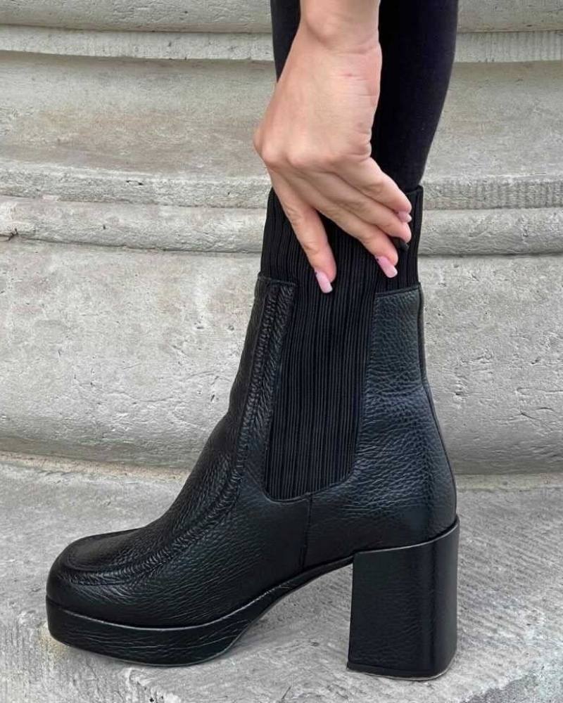 Botte Chelsea Berlin : élégance décontractée avec une touche d’originalité. Cuir fin, inserts élastiques indispensables et tige tricotée confortable pour un enfilage et un retrait rapides. Portez-le en toute confiance avec des leggings en cuir, un jean boyfriend ou des tenues business. Le soir, il apporte un accent fascinant avec une robe à bretelles ou une jupe. Avec notre assise plantaire brevetée pour un maintien sûr, il devient le compagnon idéal.