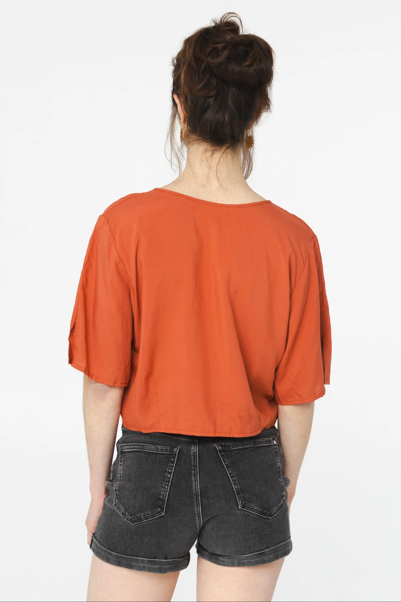 Blouse blanche à manches courtes, coupe ample, boutonnée à l’avant. 95% Coton et 5% Rayonne. La mannequin porte la taille S. Grandeur XS S M L XL Mesure ( en pouces au niveau des épaules) x 30 32 34 x Entretien de la rayonneLavage à froid, cycle délicat, lessive douce.Séchage à l’air libre, sur cintre […]