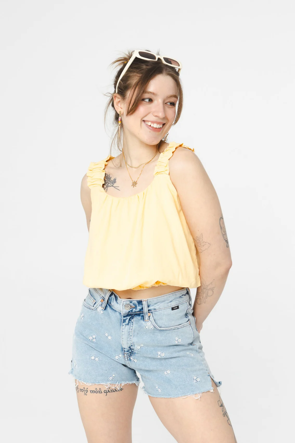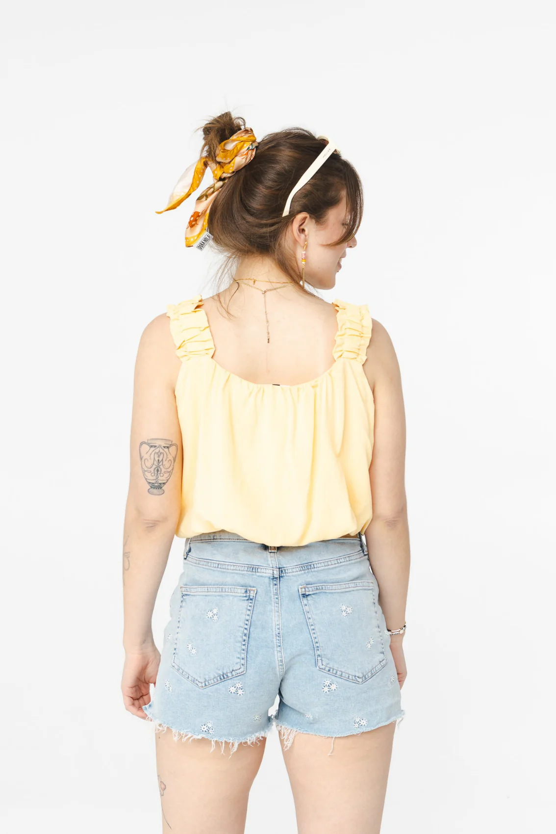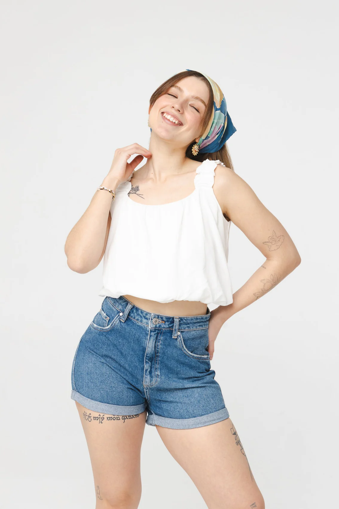 Camisole à bretelles avec taille élastique pour un effet bouffant et tendance.