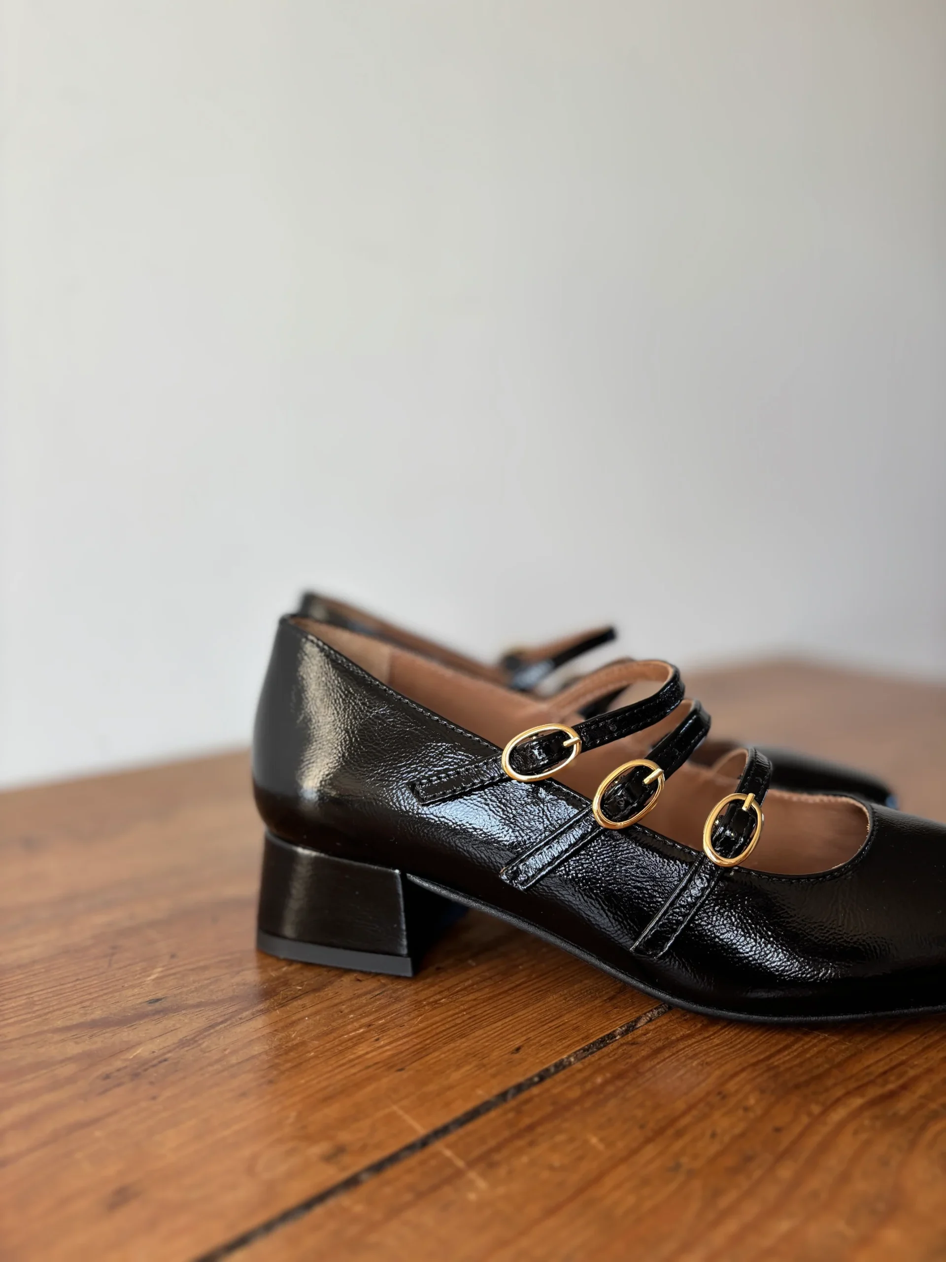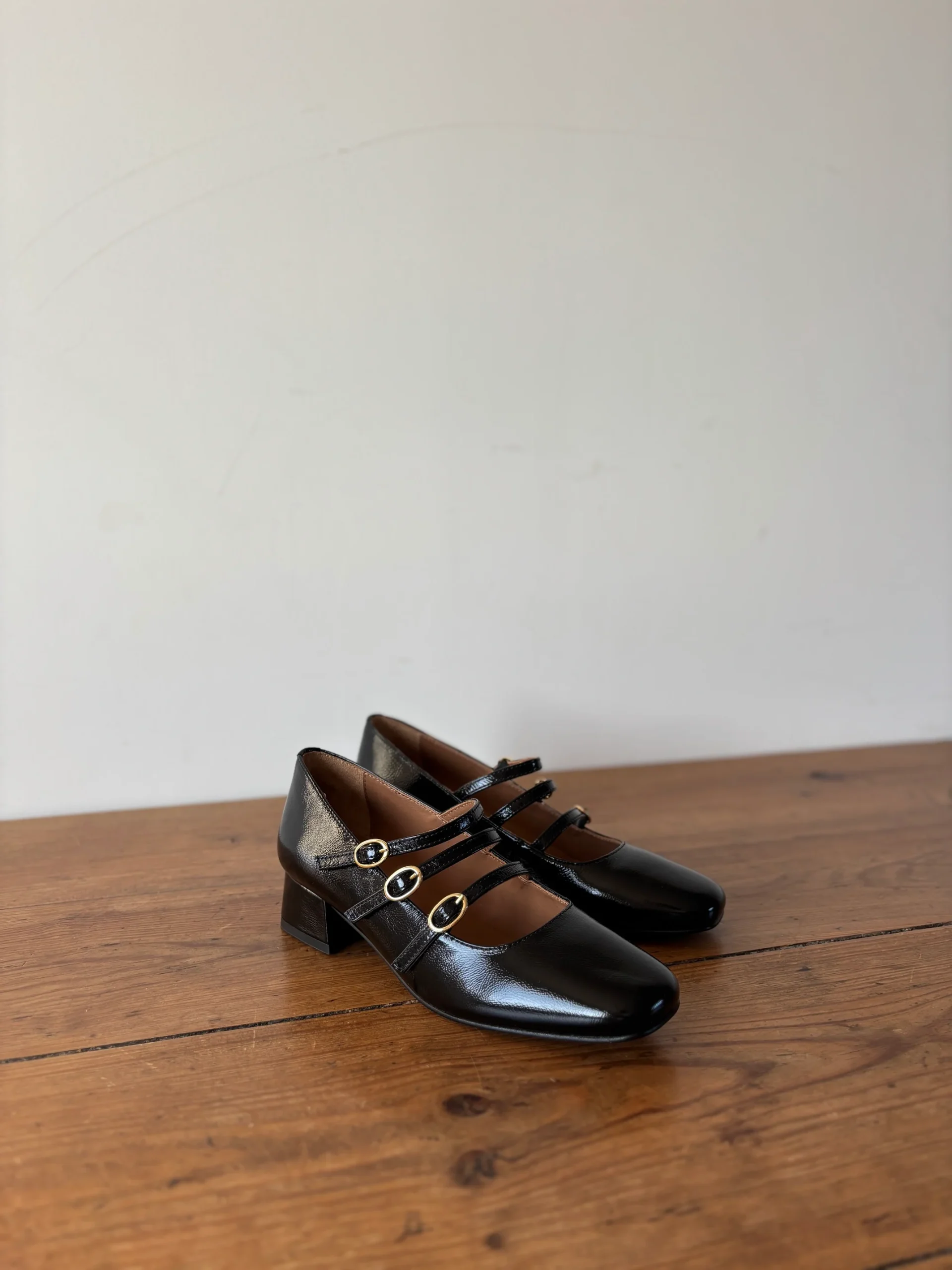 Dessus / Tige : Cuir vernisDoublure : CuirSemelle de propreté : CuirSemelle d’usure : Synthétique Bout de la chaussure : Carré arrondiForme du talon : CarréHauteur du talon : 4 cm environFermeture : Triple bridesMotif / Couleur : Noir Nom du modèle : AMBREMarque : MAISON TOUFET Informations additionnelles : Prenez votre pointure habituelle.