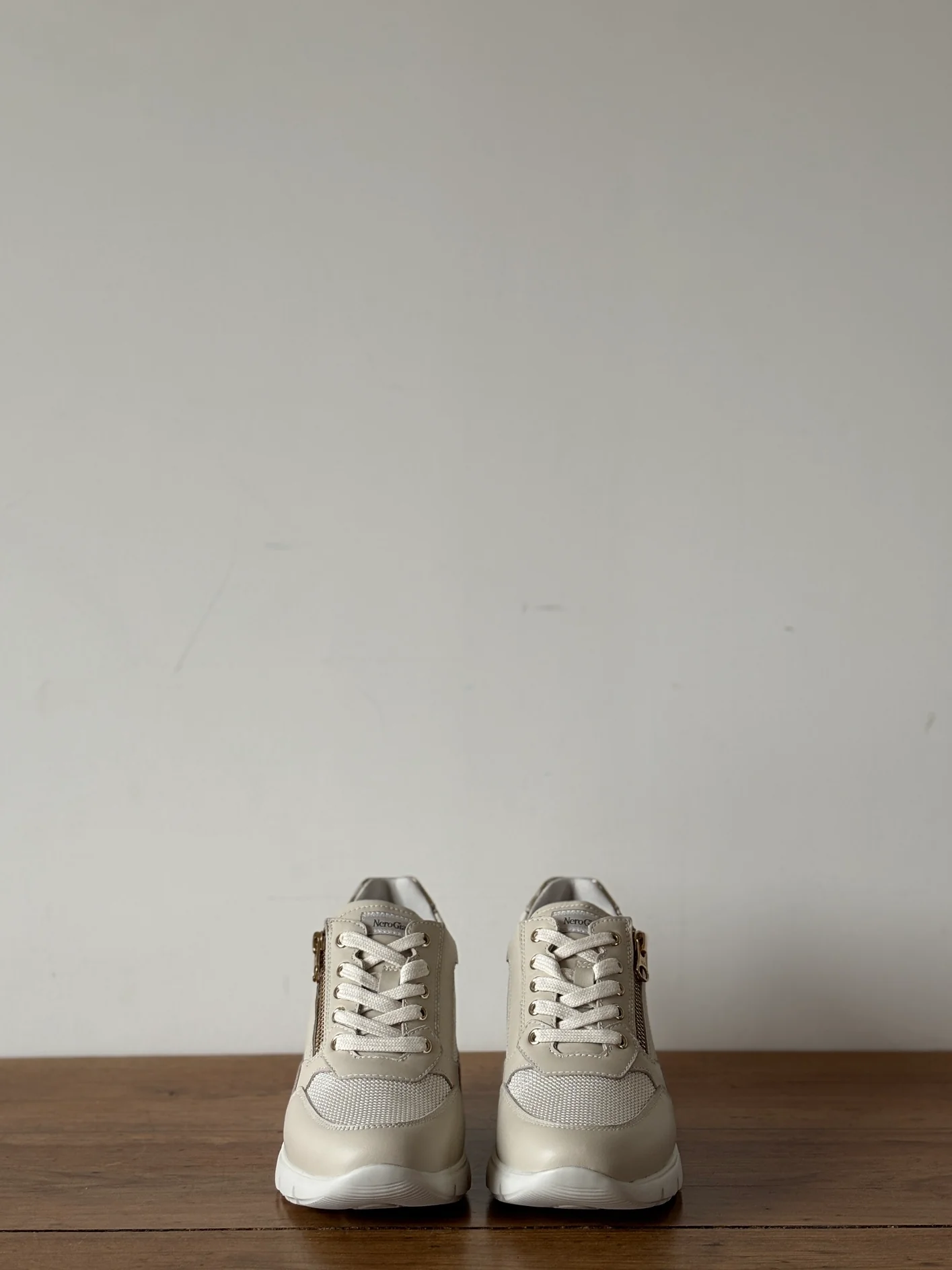 Dessus / Tige : CuirDoublure : CuirSemelle de propreté : CuirSemelle d’usure : Synthétique Bout de la chaussure : Rond allongéForme du talon : CompenséHauteur du talon : 5 cm environFermeture : Lacets & fermeture éclairMotif / Couleur : Beige Marque : NÉRO GIARDINI Informations additionnelles : Prenez votre pointure habituelle.