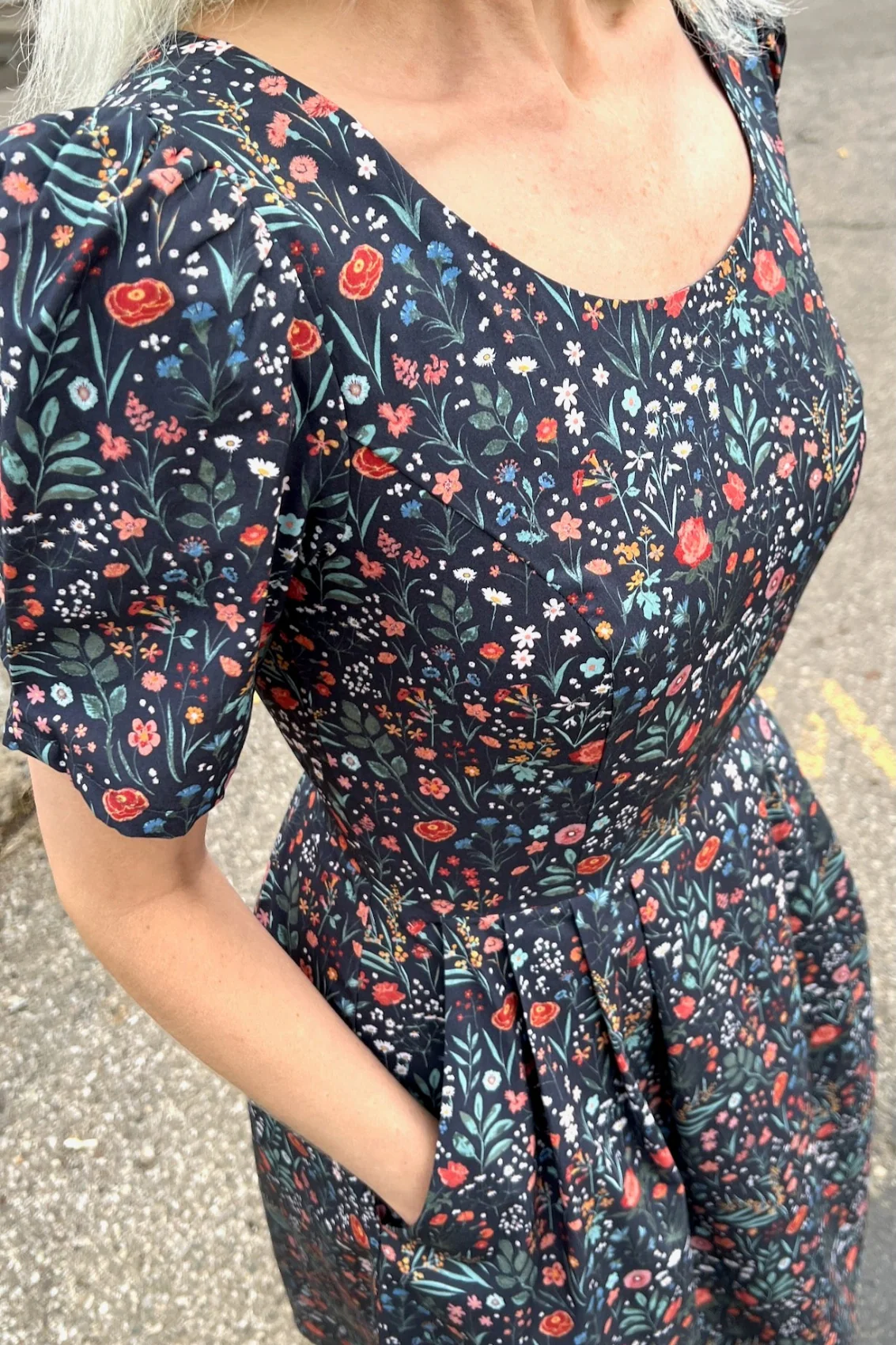 La robe Winter Chippy arbore une coupe classique Birds cintrée et évasée, avec des plis à la taille, des poches sur le devant, des manches froncées avec un ourlet plissé et une fermeture éclair invisible au dos.