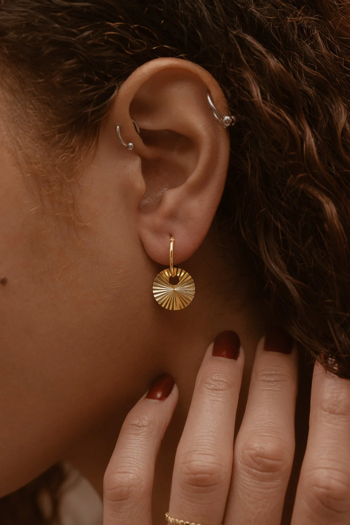 Éventail sur anneaux Matériaux : Argent Sterling ou Or Vermeil 14K. Taille : 14mm + 14mm. Imaginé à Montréal.