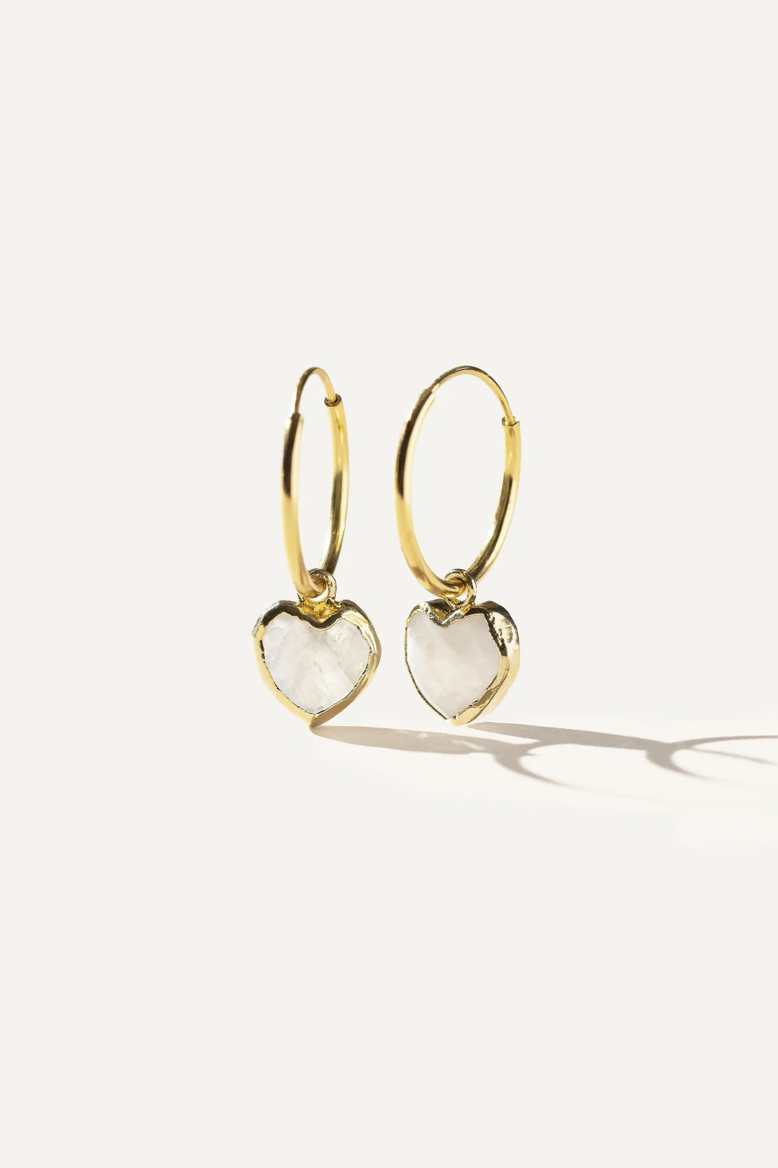 PENDENTIF FACETTÉ DE PIERRE EN FORME DE COEUR SUR UN ANNEAUX EN ARGENT VÉRITABLE PLAQUÉ OR 14K Matériaux : Argent Plaqué Or 14K. Imaginé à Montréal.