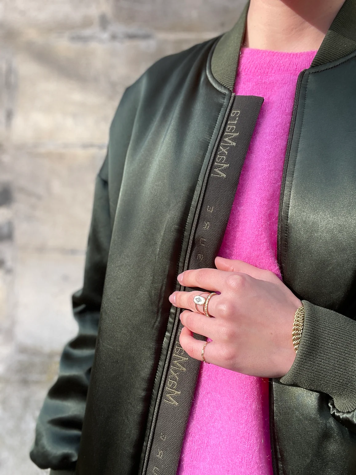 Matières : Polyester & acétate Coupe : Large. Poches plaquées. Fermeture éclair. Forme du col : Col officier Longueur des manches : Manches longues avec élastique aux poignets. Couleurs / Motifs : Kaki Notre modèle porte une taille 34 et mesure 160 cm. Nom du modèle : SIERRA Marque : MAX MARA LEISURE Conseils d’entretien […]