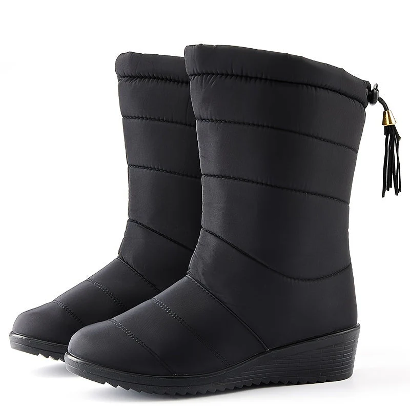 Bottes d’hiver femme doublées – Bottes chaudes antidérapantes avec cordon de serrage