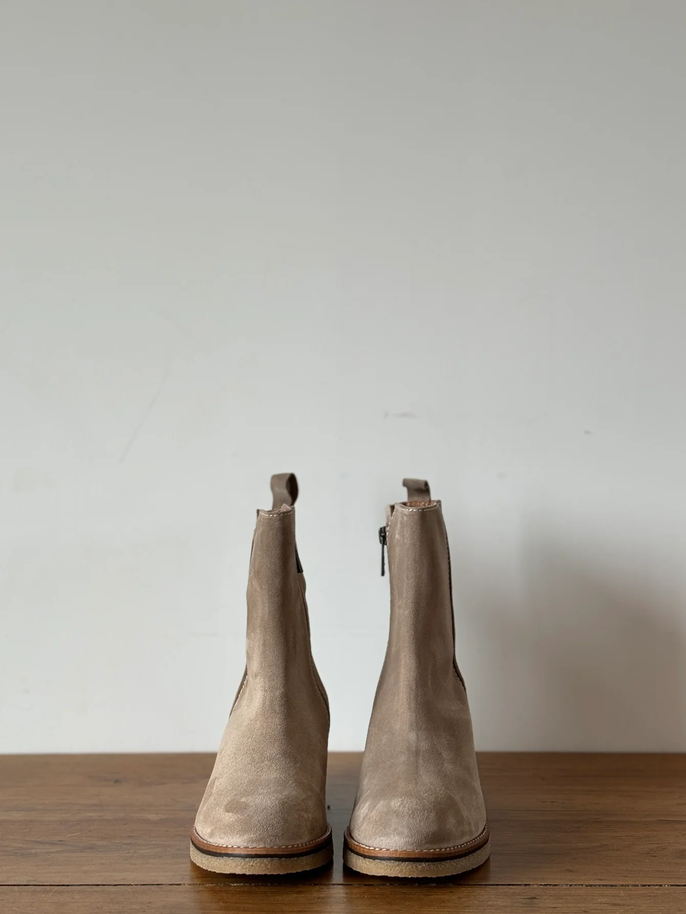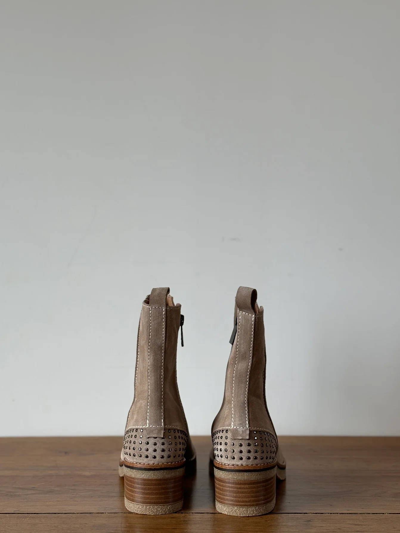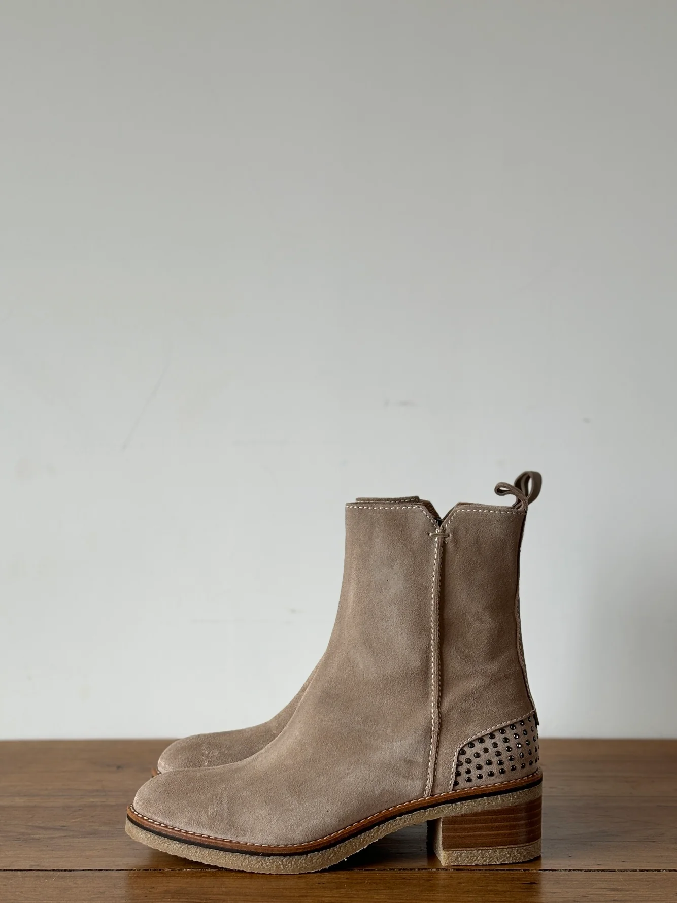 Dessus / Tige : Cuir veloursDoublure : CuirSemelle de propreté : CuirSemelle d’usure : Synthétique Bout de la chaussure : RondForme du talon : CarréHauteur du talon : 4 cm environFermeture : Fermeture éclairMotif / Couleur : Taupe Nom du modèle : FRETTEMEULEMarque : ROSEMETALInformations additionnelles : Prenez votre pointure habituelle. Pensez à les imperméabiliser […]
