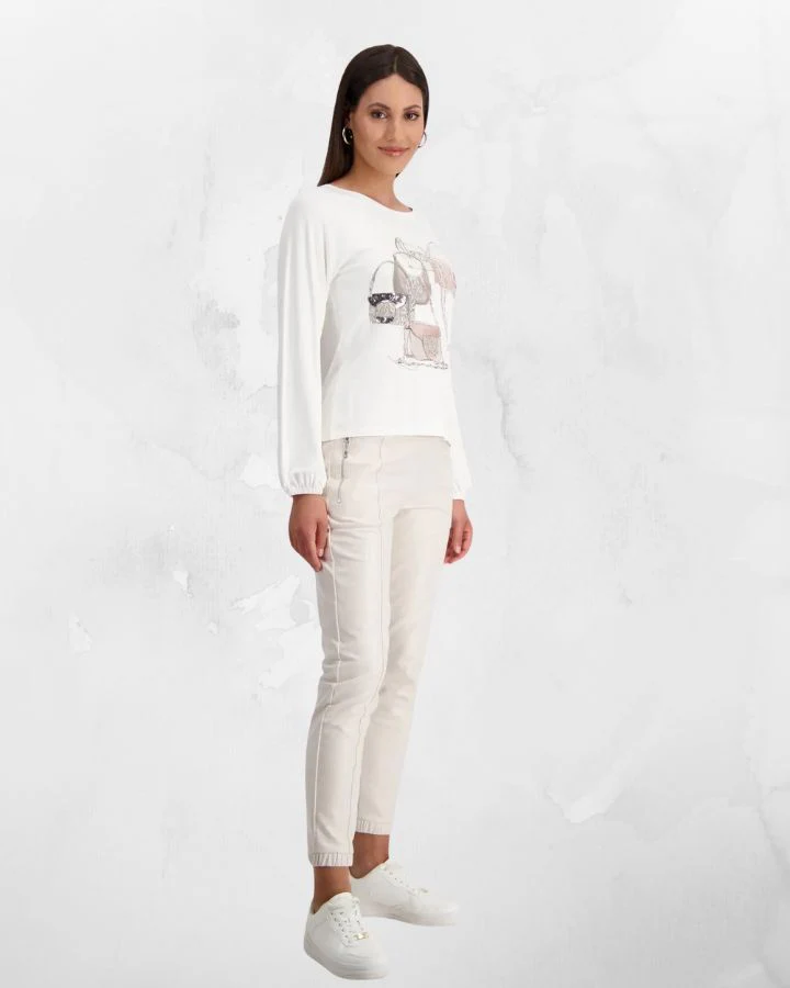 Chandail élégante en matière douce avec imprimé de Sac à main et strass.