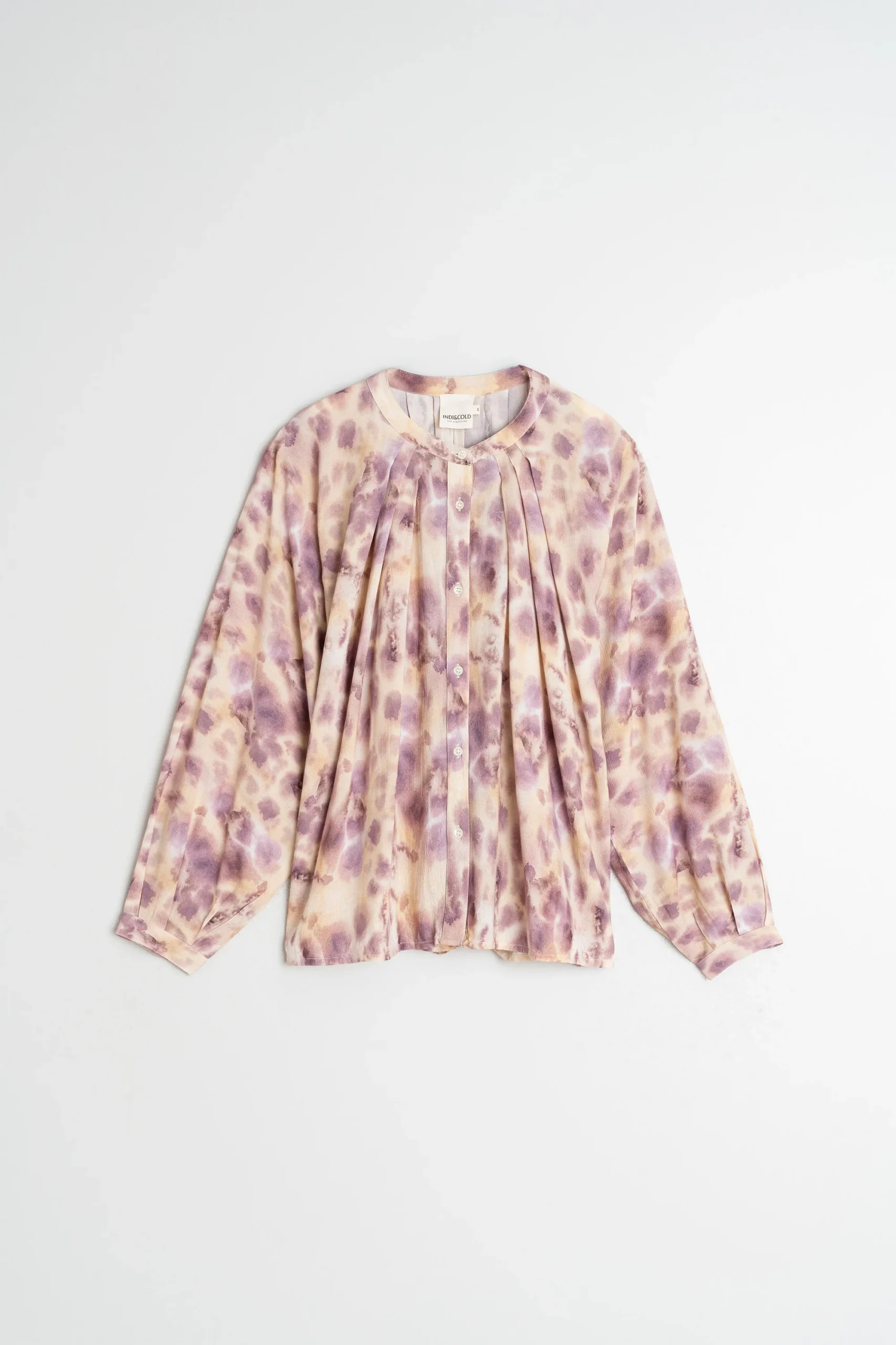 Sustainable viscose shirt with a watercolor print and batwing sleeves that give volume to the garment. It has a buttoned closure, and the relaxed fit provides a casual look.
