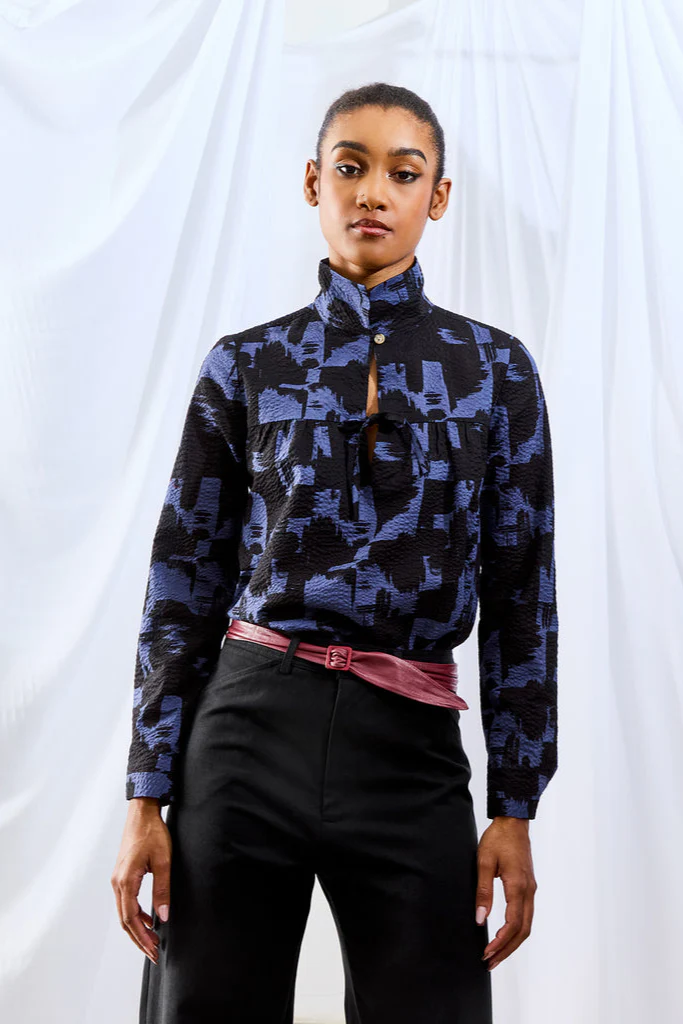 Superbe chemisier en coton tissé Dream. Encolure fendue nouée sur le devant, avec possibilité de boutonnage au col, pour un porté relevé ou non. Empiècements froncés devant et dos. Manches longues rentrées dans les poignets.