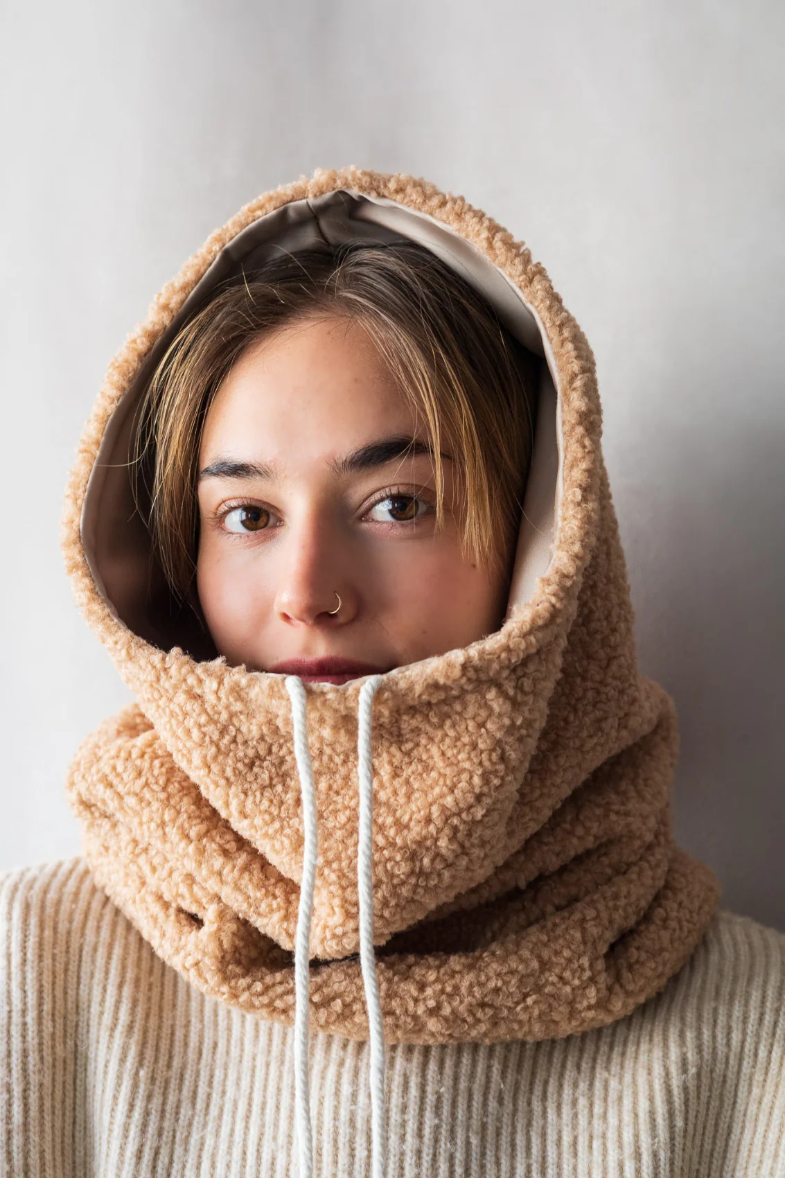 Pensée pour allier confort et soin, cette capuche est doublée d’un satin lisse et doux, parfait pour protéger les cheveux du frottement et prévenir les frisottis. Son extérieur molletonné apporte chaleur et douceur, tandis que sa coupe enveloppante permet de la porter relevée sur la tête ou abaissée dans le cou, selon vos besoins.