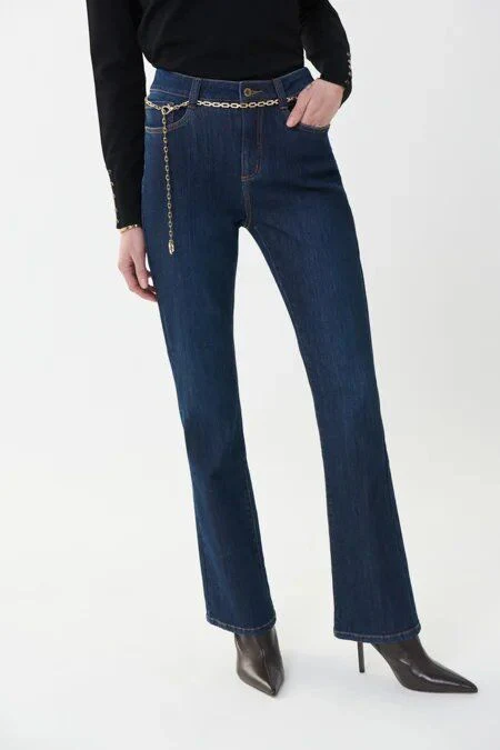 Beau jeans, modèle 5 poches, taille haute ,coupe Bootcut, belle ceinture.