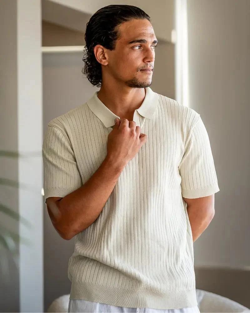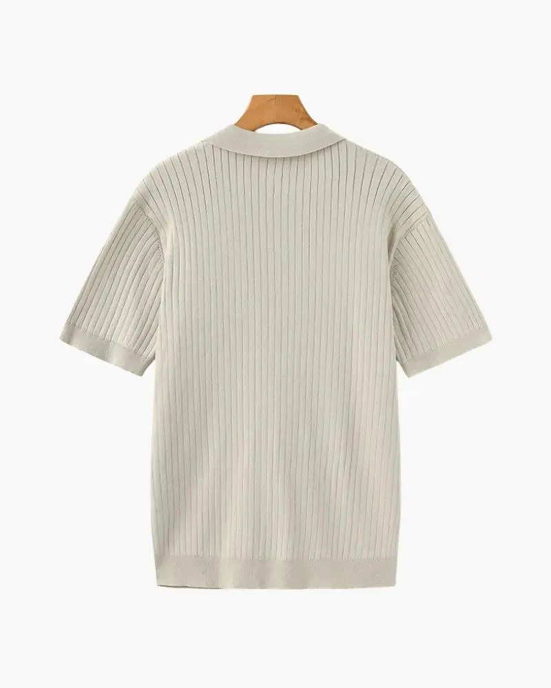 Un polo en tricot conçu pour une sophistication discrète. Les côtes verticales ajoutent du relief, tandis que la coupe ample assure un confort tout au long de la journée. Parfait pour les superpositions ou porté seul, ce vêtement polyvalent allie confort et charme intemporel.