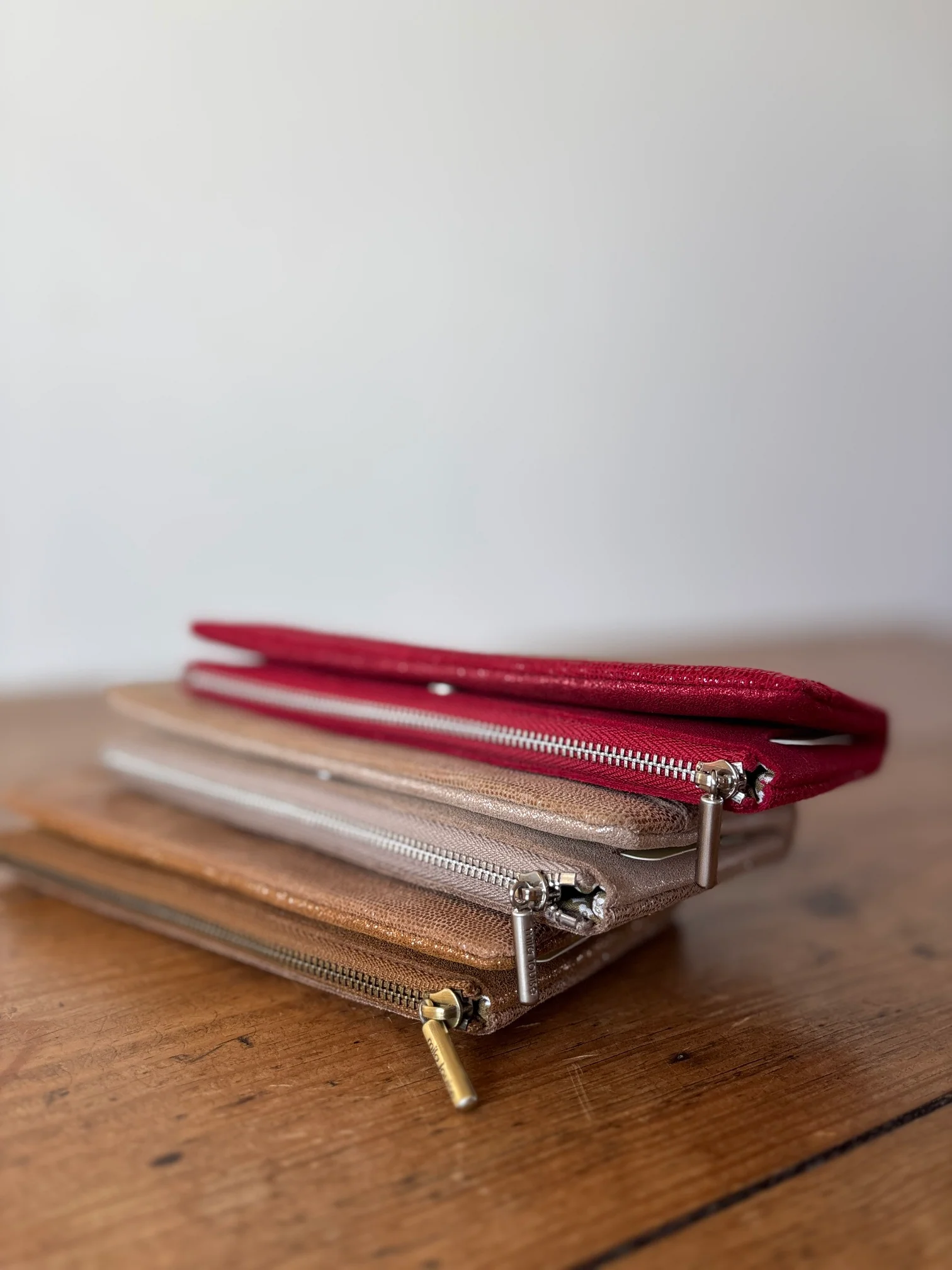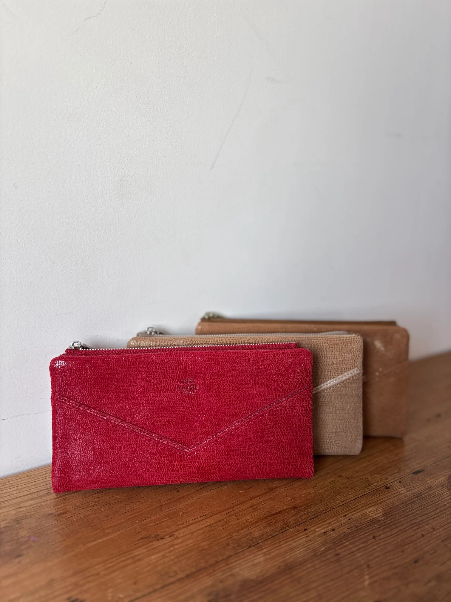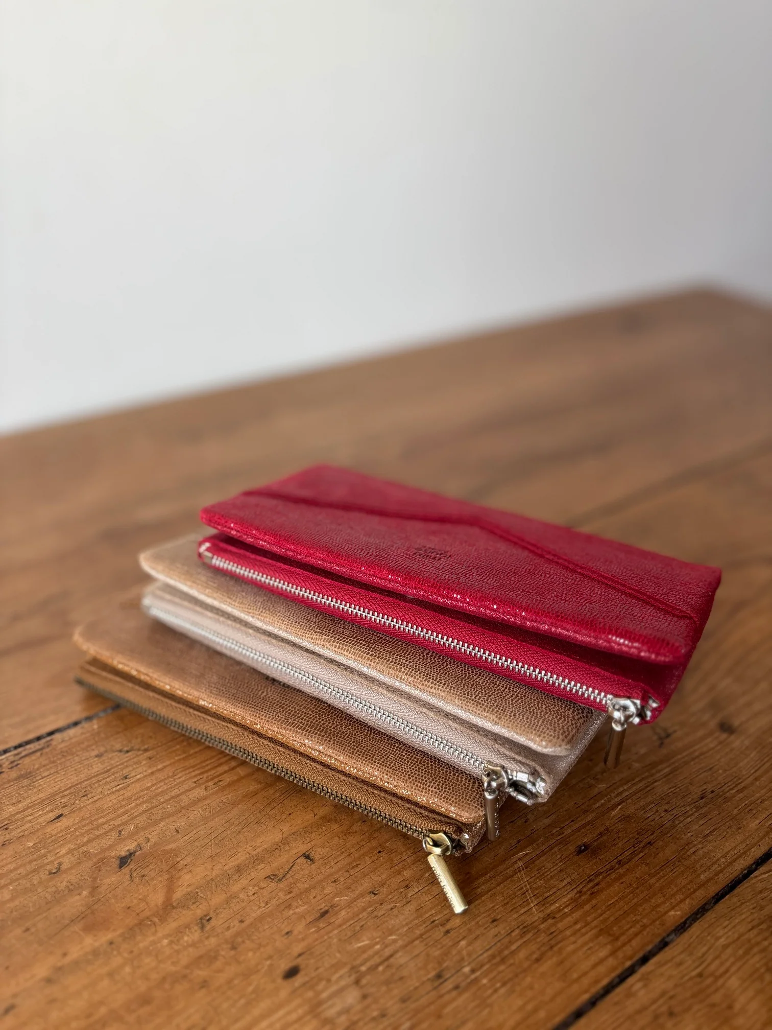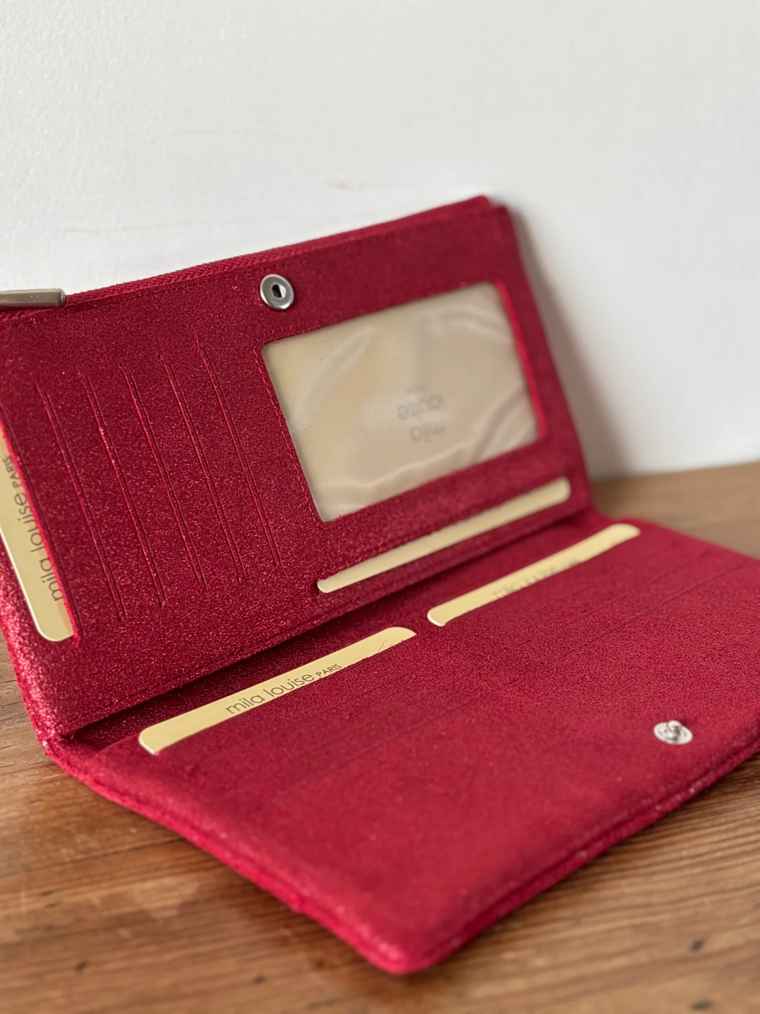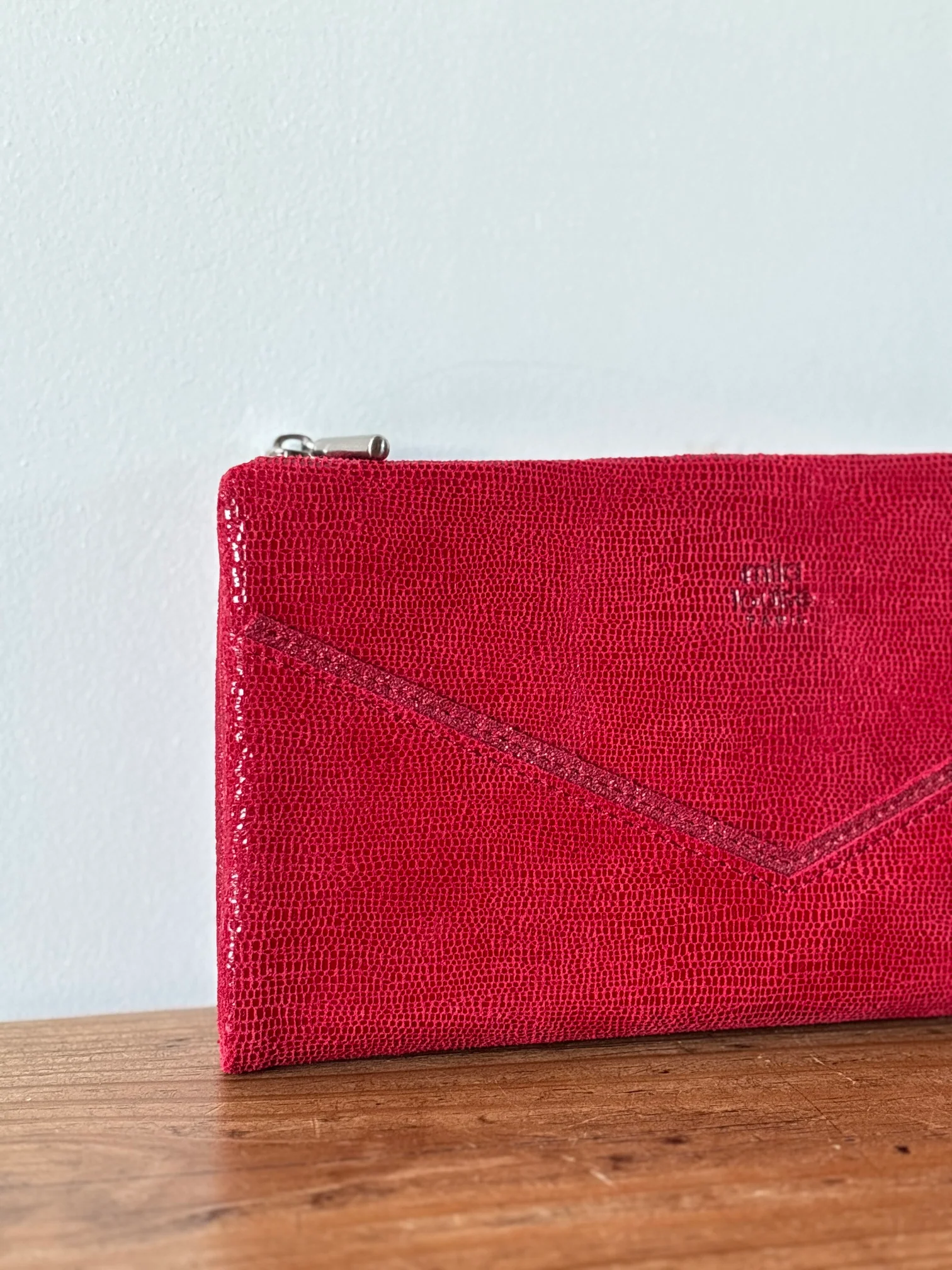 Matières extérieures : Cuir Doublure : OuiMatières doublure : Tissus Compartiments : 2 compartiments dont 1 zippé et compartiment pour cartes. Dimensions : 11.5 x 20.5 x 1 cm Nom du modèle : PRUNE BBMarque : MILA LOUISE