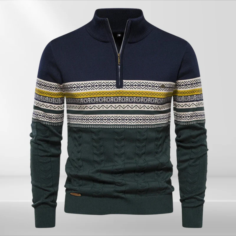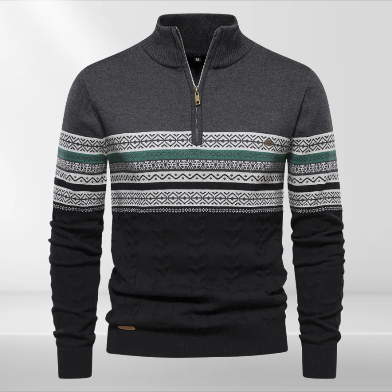 Pull d’Hiver Homme à Demi-Zip – Motif Tricoté Classique