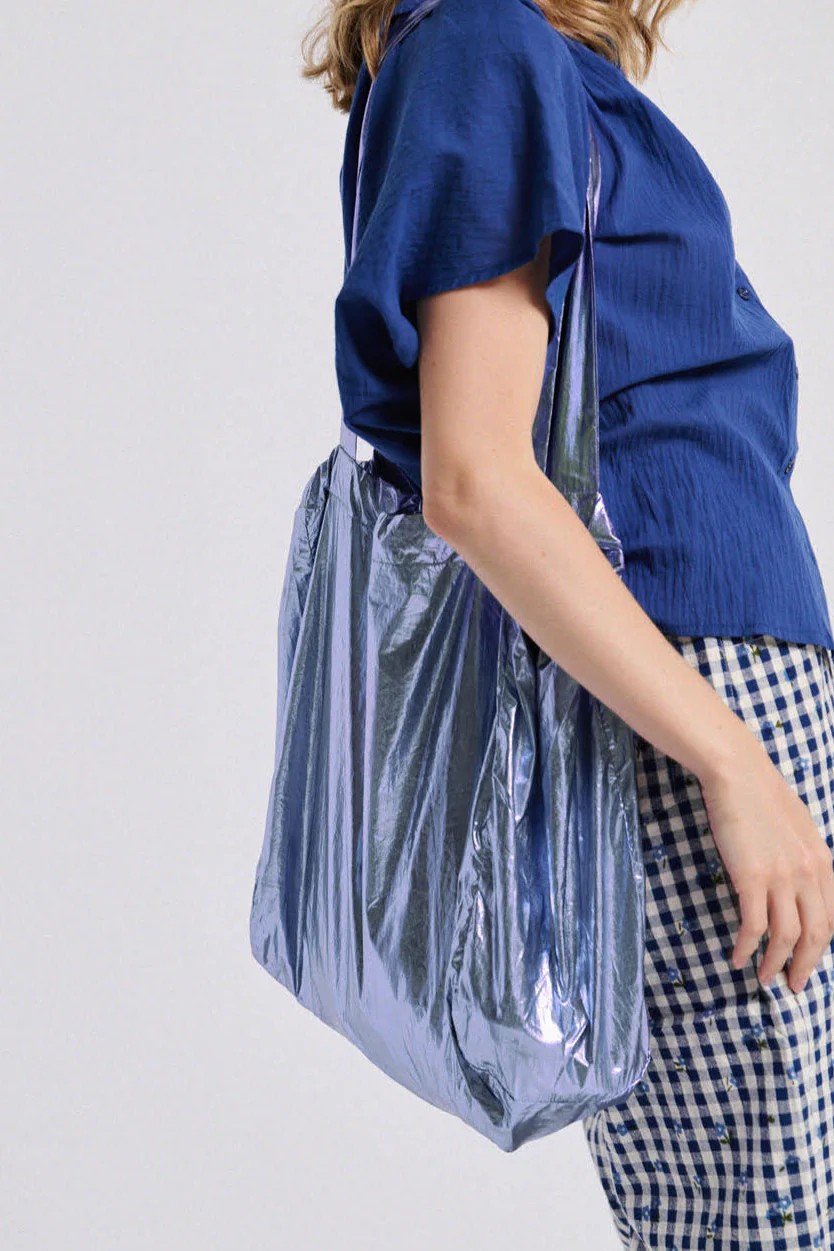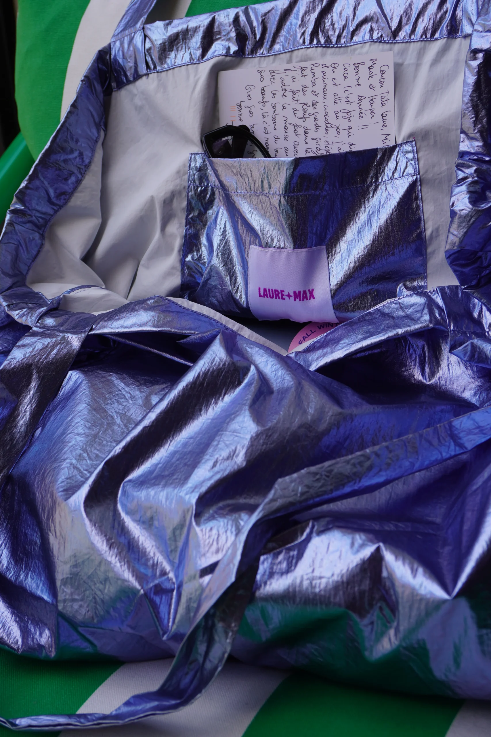 » Le sac Ava revient cette saison en version lamée, capte la lumière et relève une tenue en un rien de temps. Vaste et pratique au quotidien, il offre un intérieur spacieux avec une poche intégrée pour garder vos essentiels à portée de main. Son cordon de serrage ajoute une touche moderne, faisant de lui l’allié parfait pour conjuguer style et fonctionnalité. «