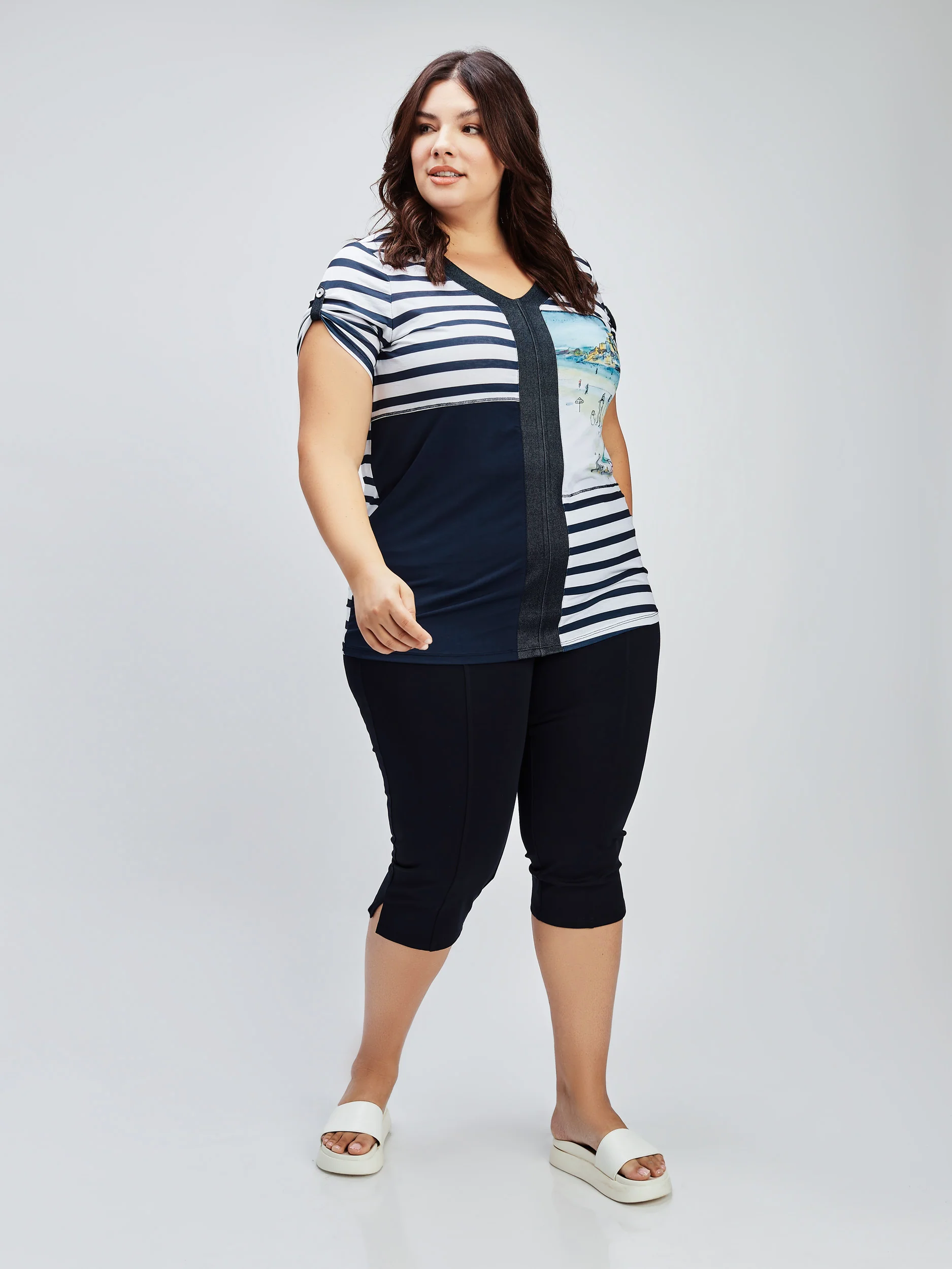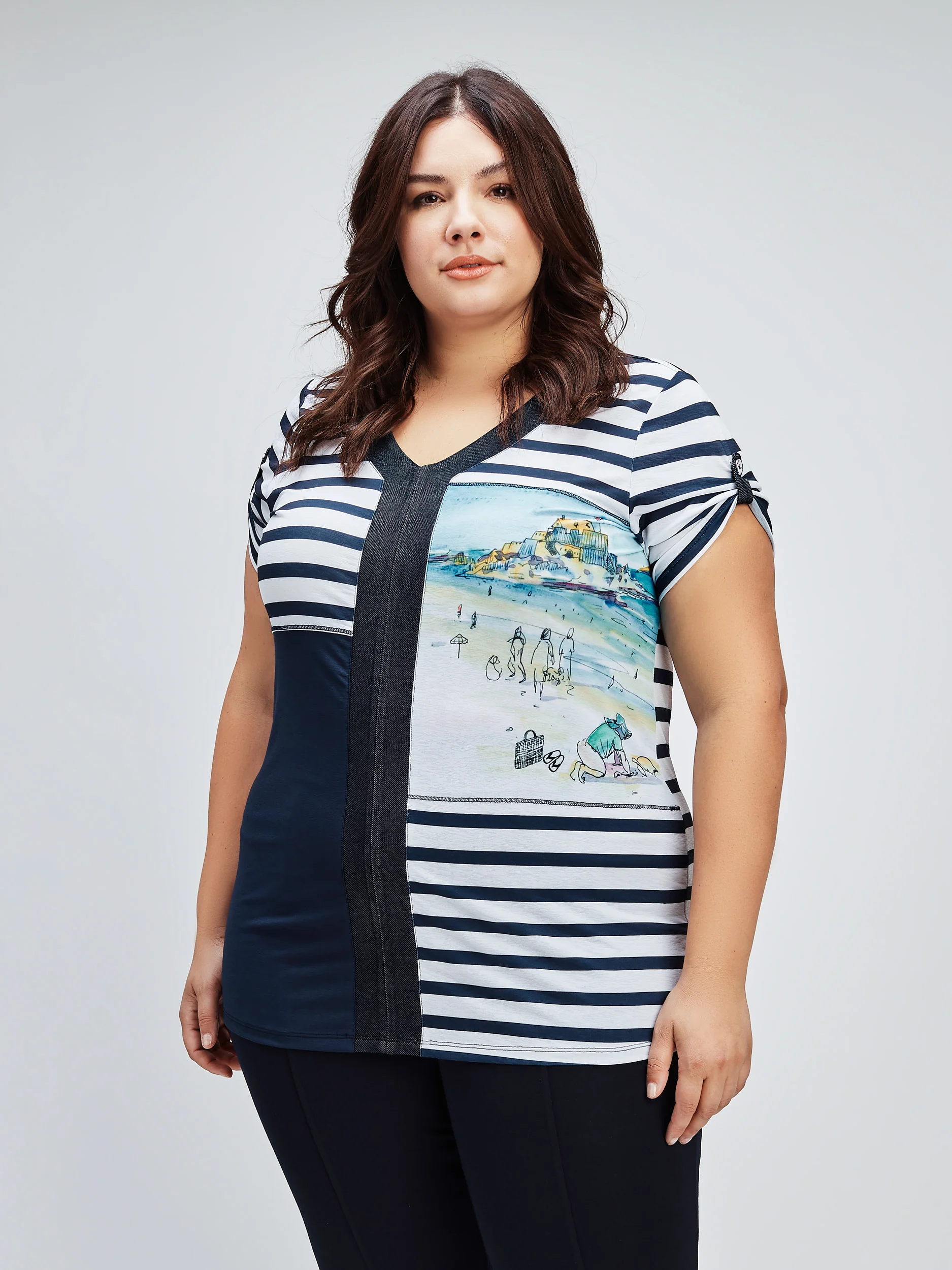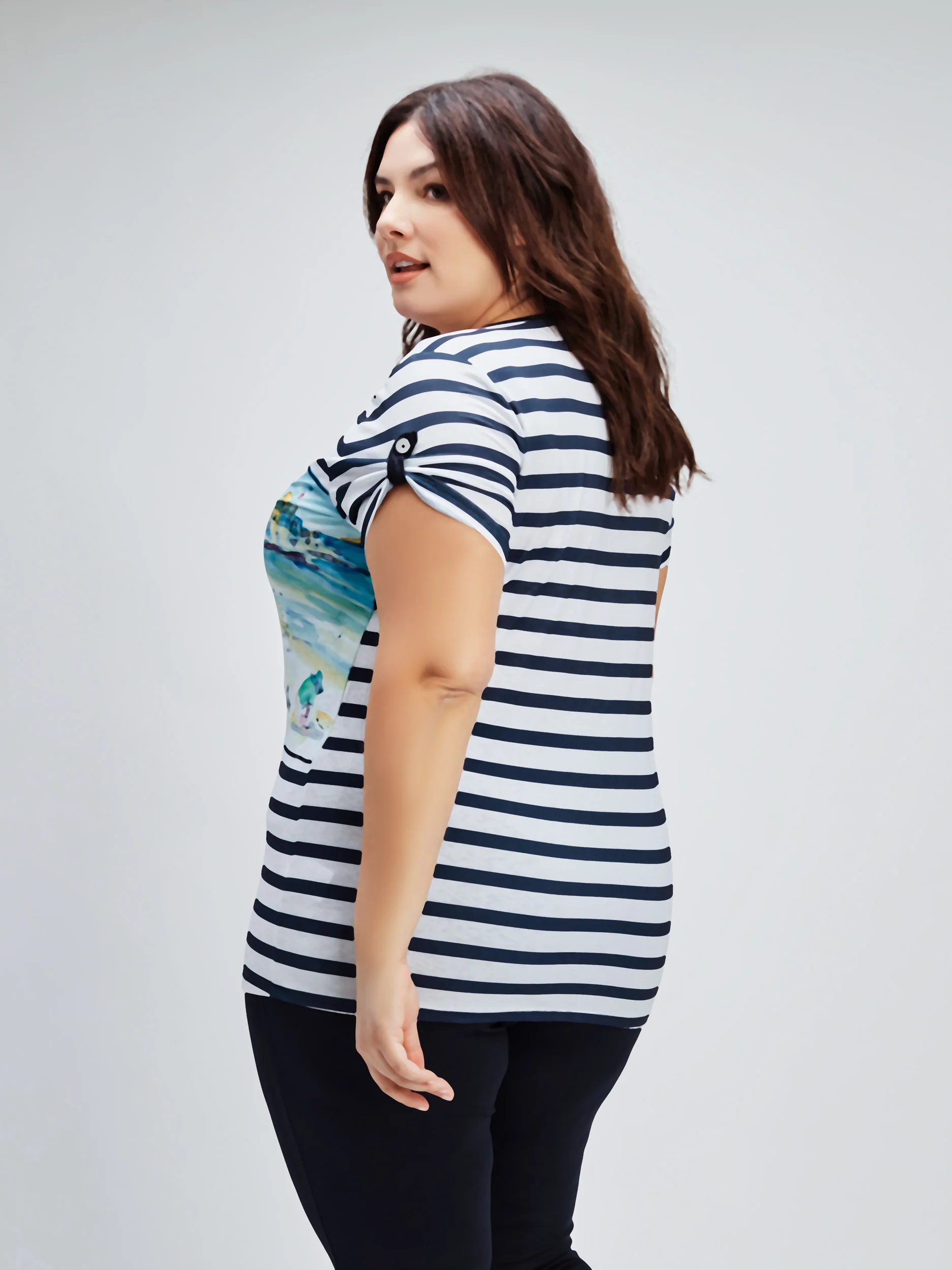 Ce T-shirt imprimé offre un confort sans faille avec une silhouette semi-ajustée. Les manches courtes avec ganse boutonnée ajoutent une touche au style.