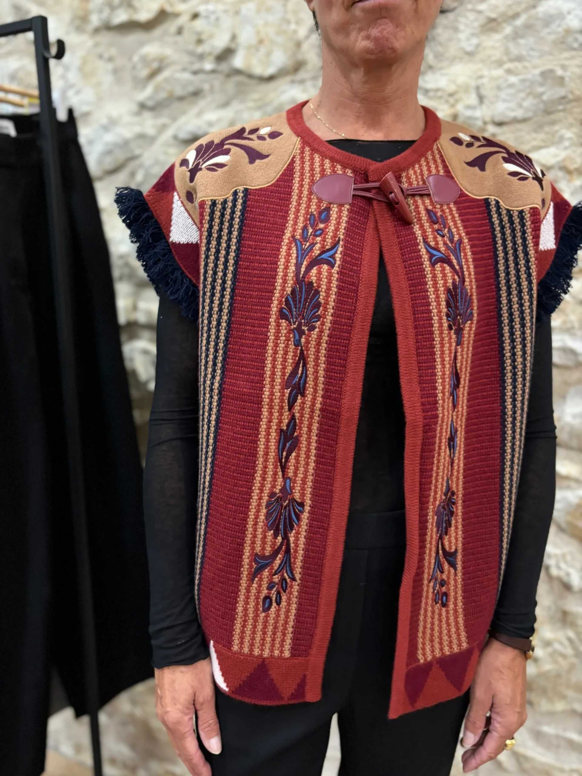 Matières : Cachemire & laine Coupe : Coupe droite & largeForme du col : Col rondLongueur des manches : Sanas manchesCouleurs / Motifs : Multi Notre modèle porte une taille S et mesure 165 cm. Nom du modèle : MAEMarque : NOT SHY Conseils d’entretien : Lavage à la main à froidInformations supplémentaires : Prenez […]
