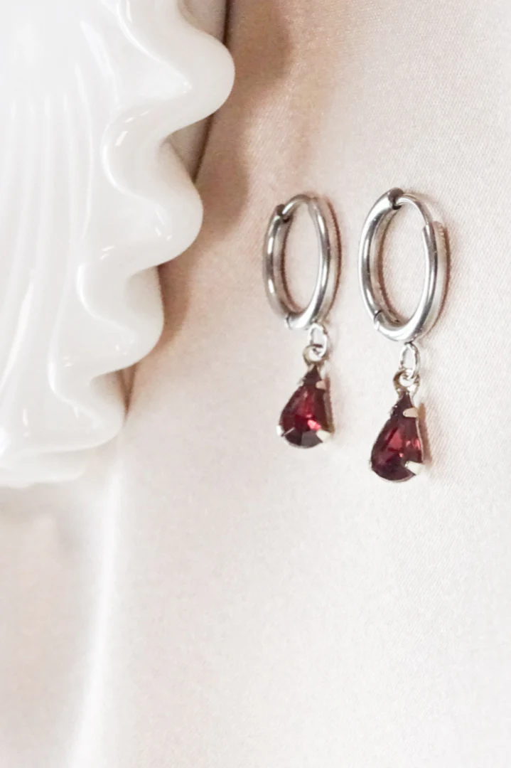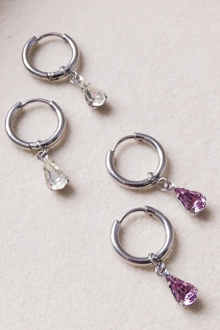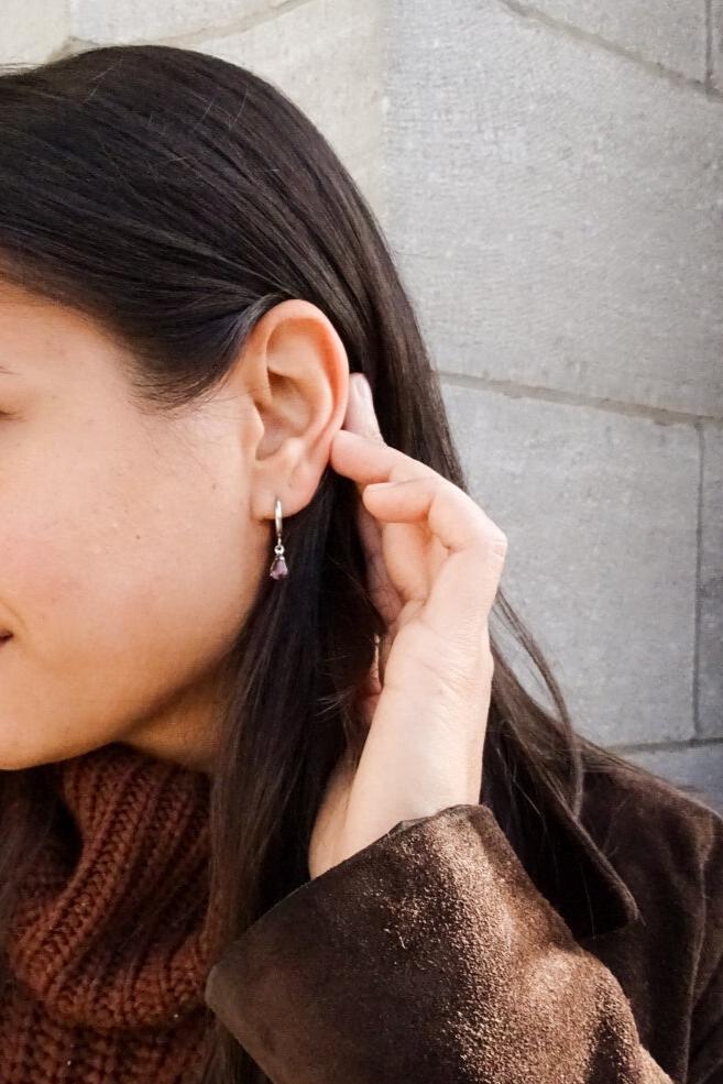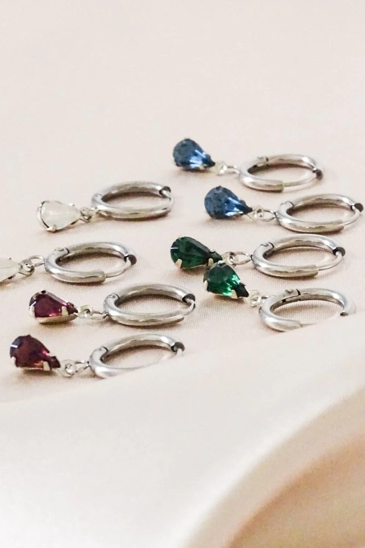 Ces mini anneaux sont fins, chics et parfait pour tous les jours. Ils sont composés d’une pierre en pendentif en verre vintage. Ils se forment grâce à des dormeuses.